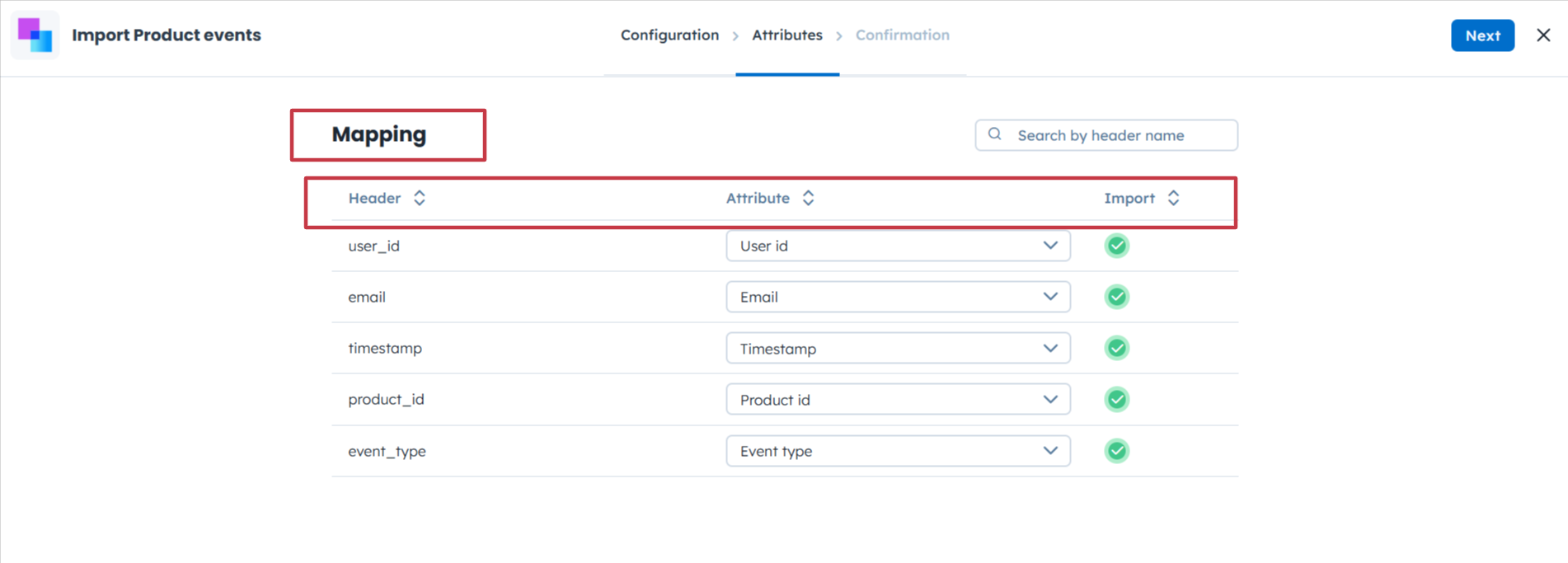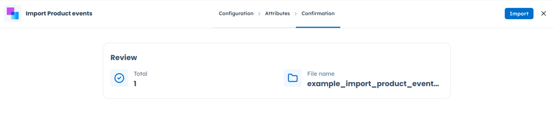 Once all the columns from your file are matched with attributes, click “Next”. You will be redirected to the “Confirmation” step.