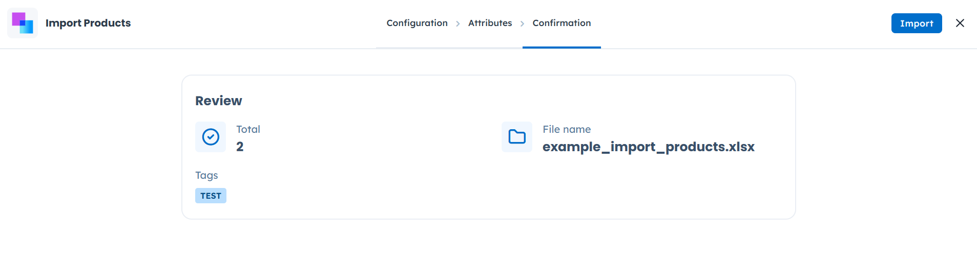 In the “Confirmation” step, you review the summary of the import and confirm the process. After confirmation, the system starts processing your file.