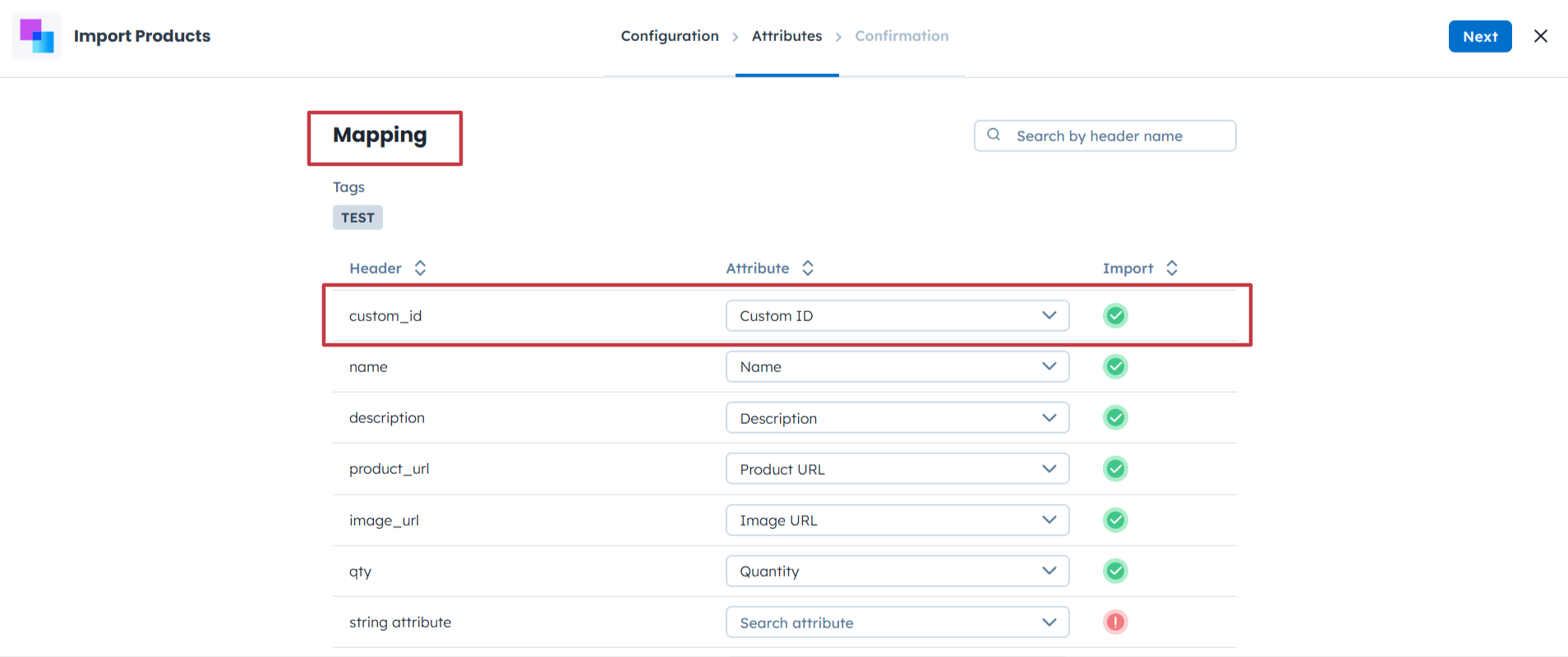 Once all the columns from your file are matched with attributes, click “Next”. You will be redirected to the “Confirmation” step.