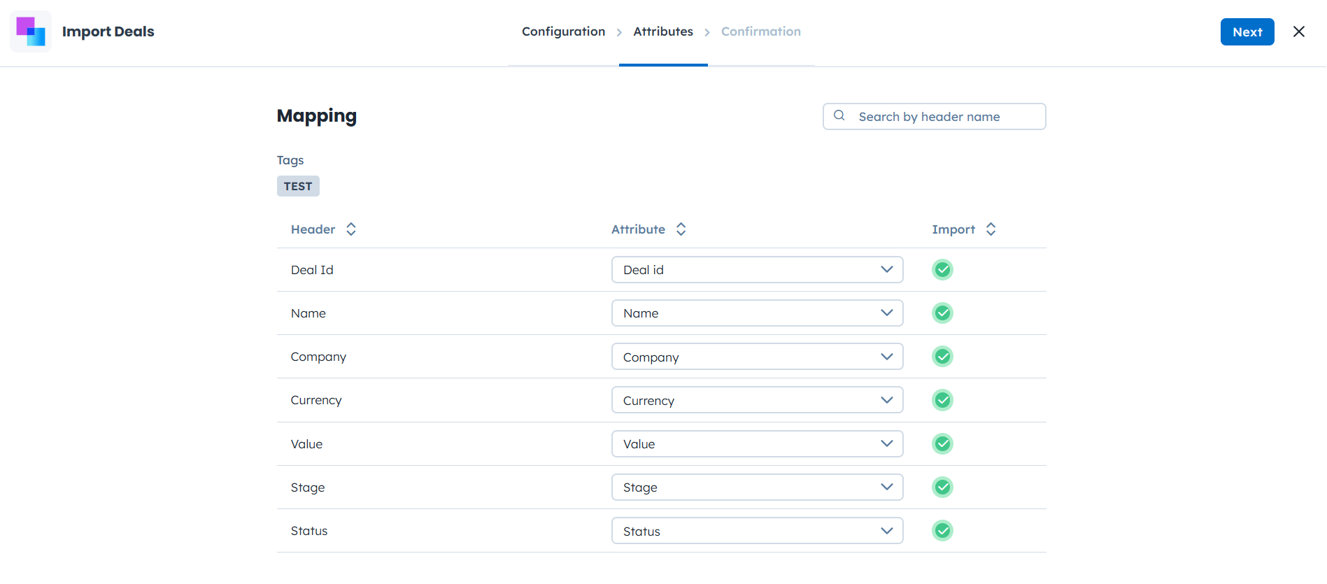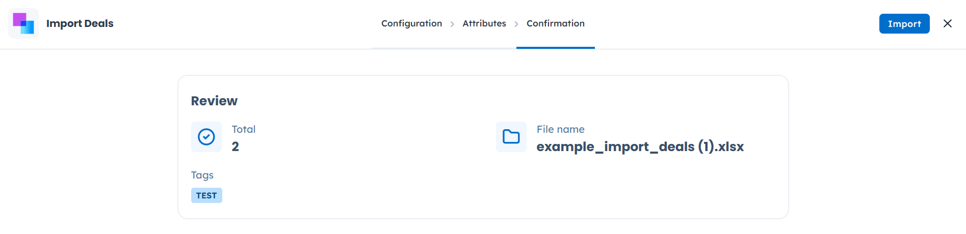 Once all the columns from your file are matched with attributes, click “Next”. You will be redirected to the “Confirmation” step.