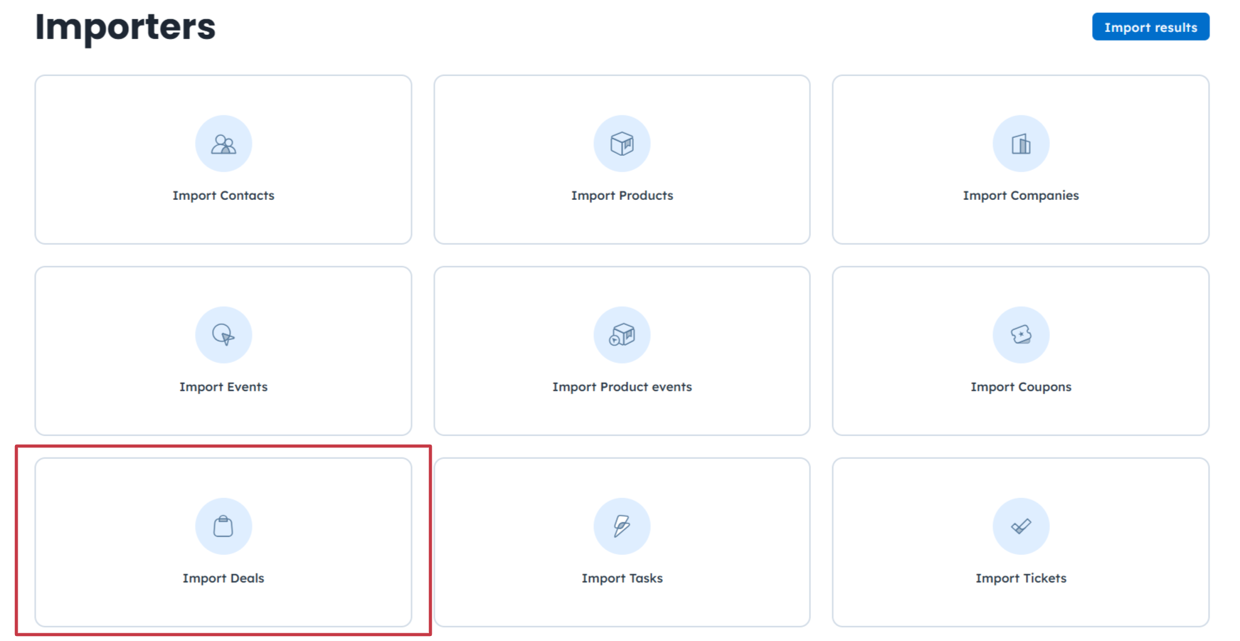 Go to “Data” → “Importers” and choose “Import Deals”.