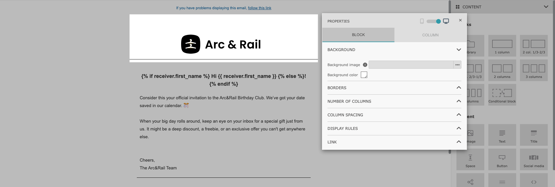 While the maximum number of columns has been reduced, this limit is intentional. Six columns are considered the optimal maximum to ensure proper rendering across almost all major email inbox providers. This approach results in cleaner, more readable layouts and minimizes the risk of display issues on different devices and email clients.