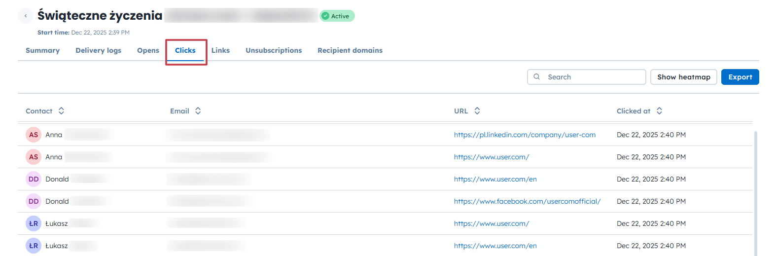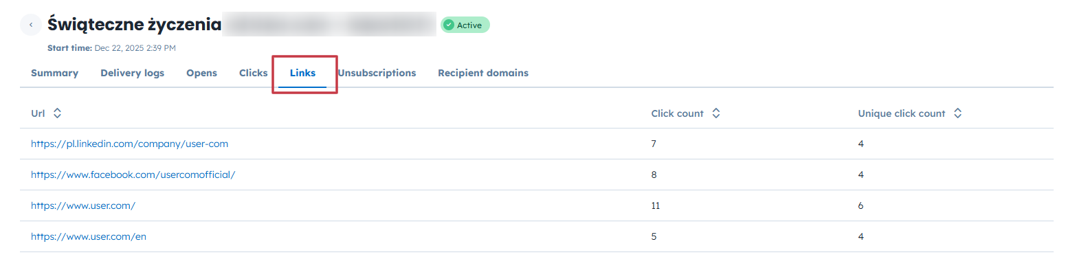 See how many clicks each link in your email received to quickly identify which CTAs and content blocks performed best. This helps you evaluate audience interest, optimize email structure and messaging, refine future campaigns, and focus on the offers or topics that drive the most engagement.