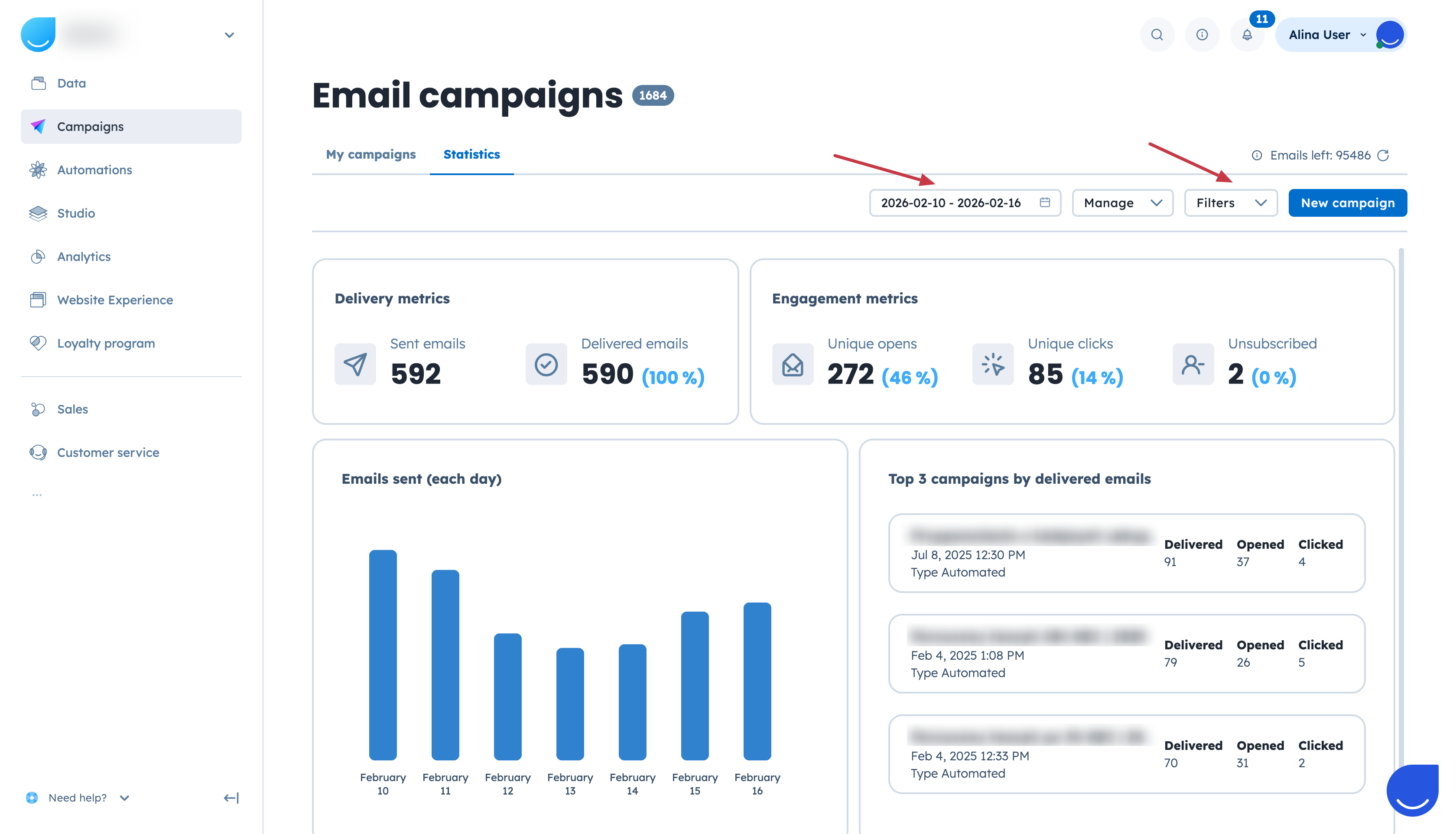 On top of the “Campaigns” section you can apply the date range - then system will show you only statistics collected within a chosen period of time.