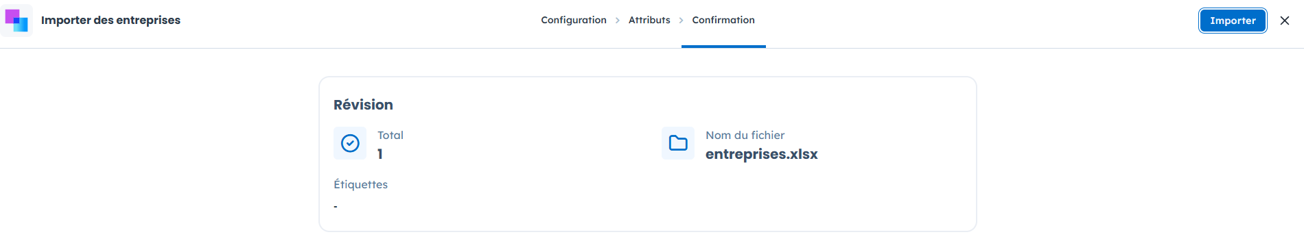 Une fois toutes les correspondances effectuées, cliquez sur “Suivant”. Vous serez redirigé vers l’étape “Confirmation”.