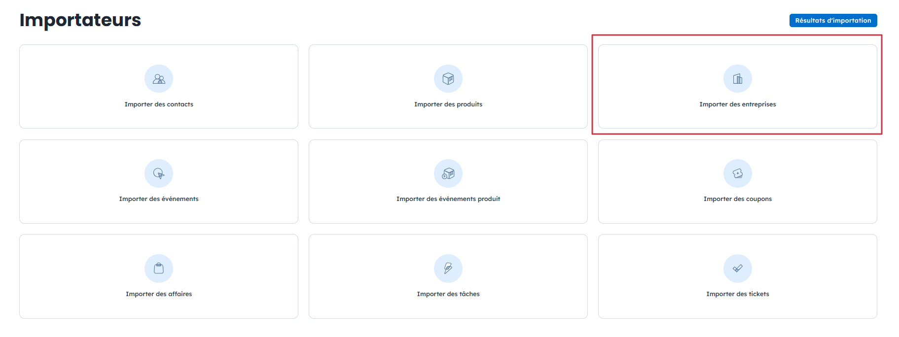 Accédez à “Données” → “Importateurs” sélectionnez “Importer des entreprises”.