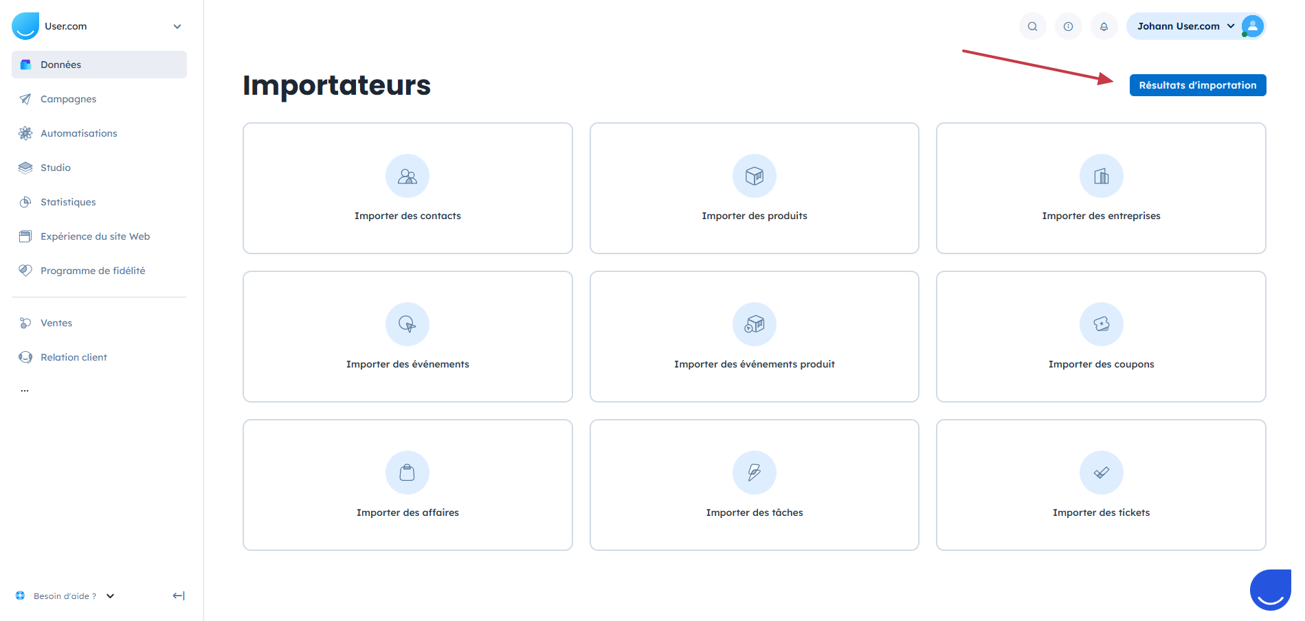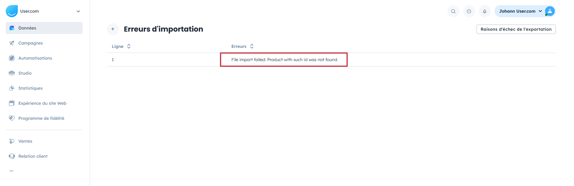 Allez dans “Données” → “Importateurs” → “Résultats d'importation” et cliquez sur le nom du fichier importé. Vous y trouverez des informations détaillées sur l'import ainsi que les raisons du rejet de certaines lignes.