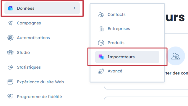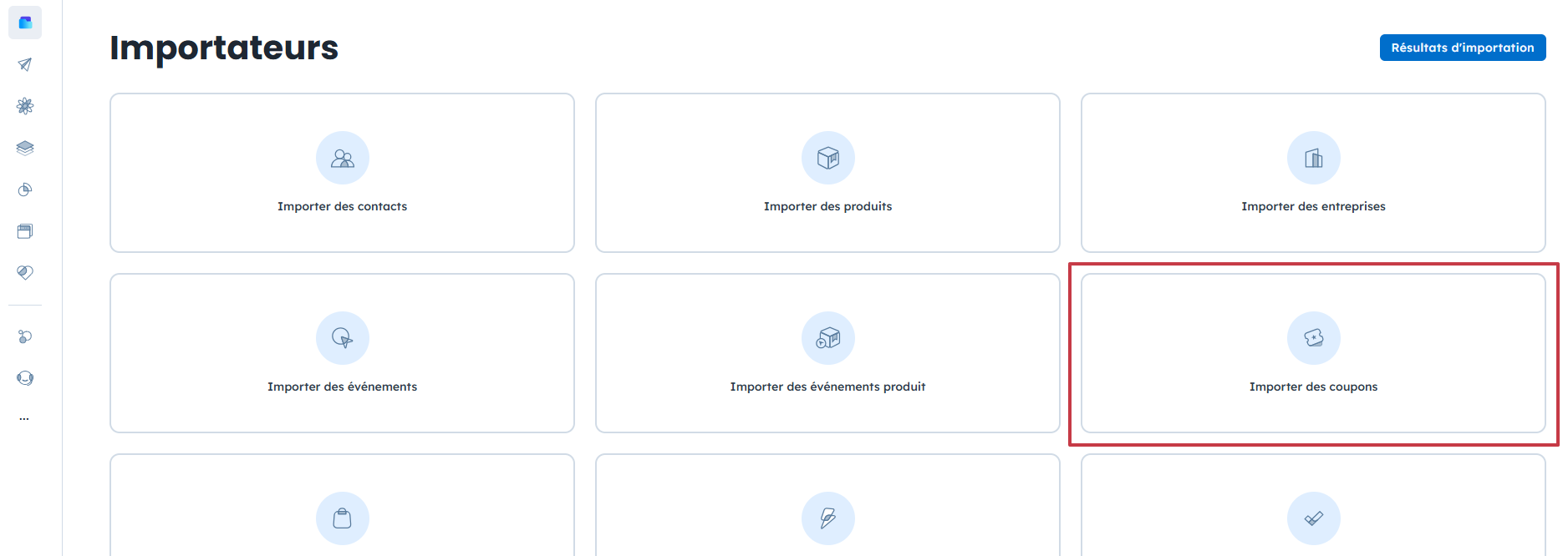 Accédez à “Données” → “Importateurs” et sélectionnez “Importer des coupons”.