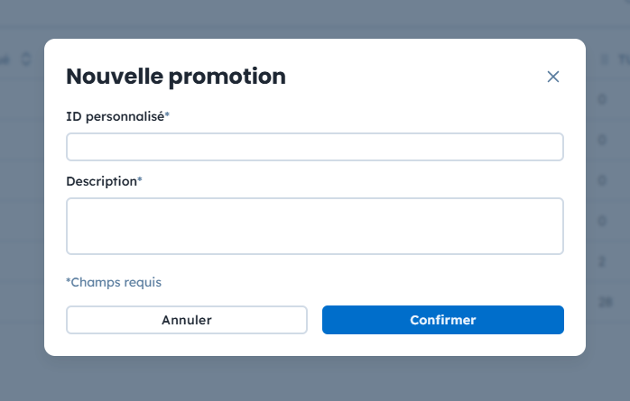 Les champs Custom ID et Description n’ont aucun impact sur les règles des coupons : celles-ci doivent être configurées directement dans votre plateforme e-commerce.