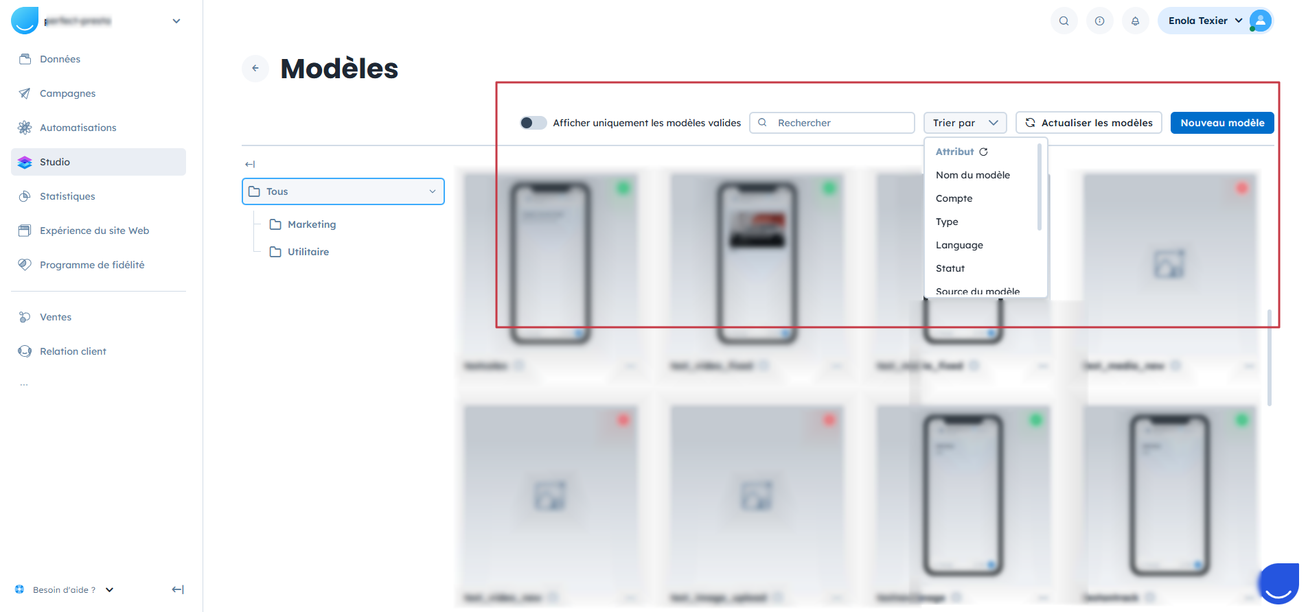 En cliquant sur les “trois points” à côté d’un modèle, vous pouvez le modifier, le dupliquer ou le supprimer.