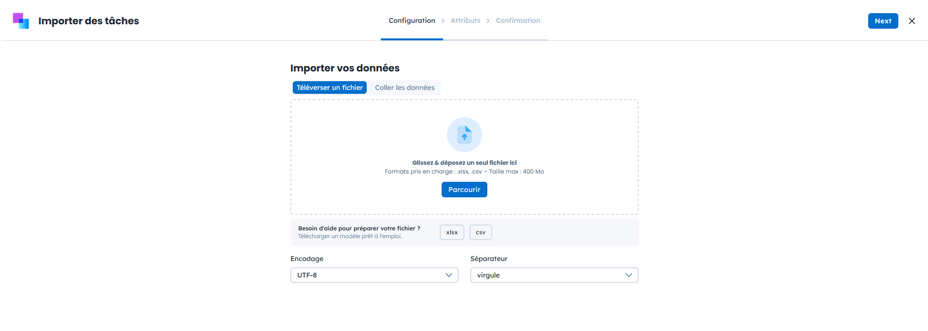 L’encodage indique à l’ordinateur comment interpréter les caractères présents dans votre fichier. Le format par défaut et recommandé est UTF-8. Cet encodage permet de s’assurer que les caractères spéciaux, les accents et les symboles seront correctement importés, sans être remplacés par des caractères incorrects.