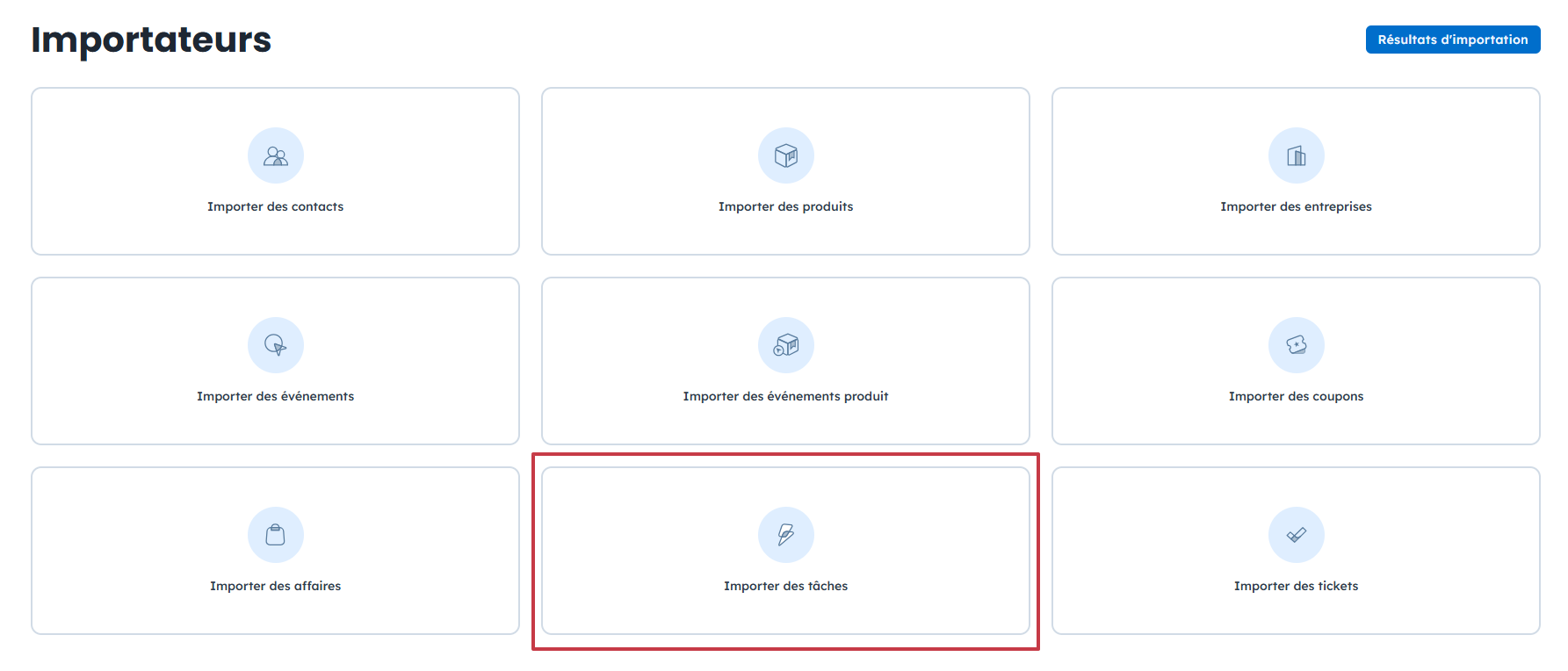 Accédez à “Données” → “Importateurs” et sélectionnez “Importer des tâches”.