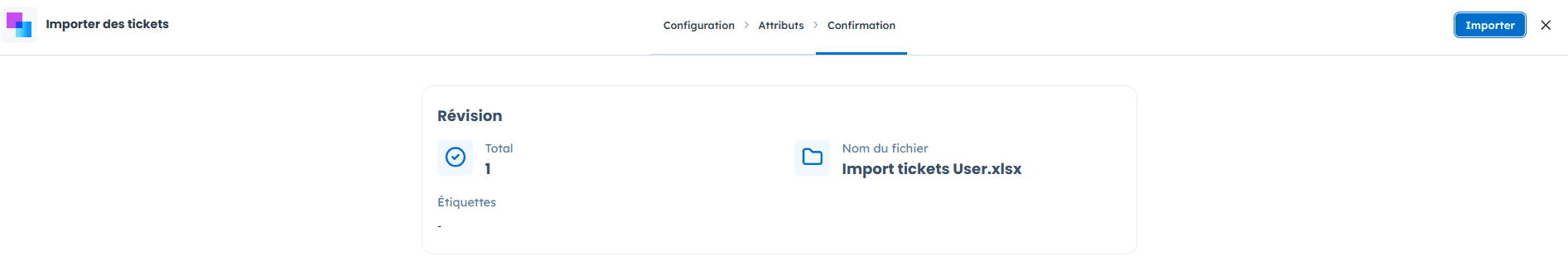 Lors de l’étape “Confirmation”, vous pouvez vérifier le récapitulatif de l’import avant de valider l’opération. Une fois l’import confirmé, le système commence à traiter votre fichier.