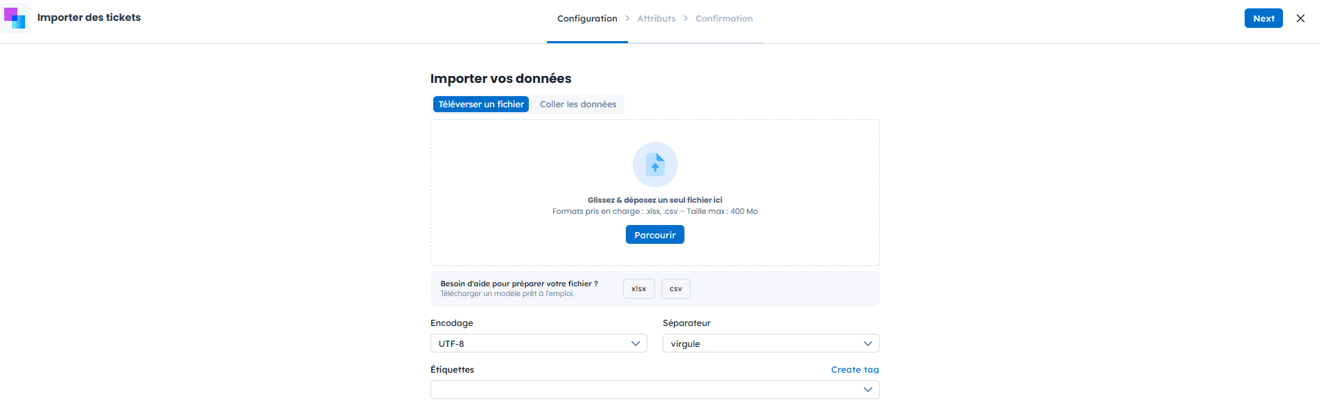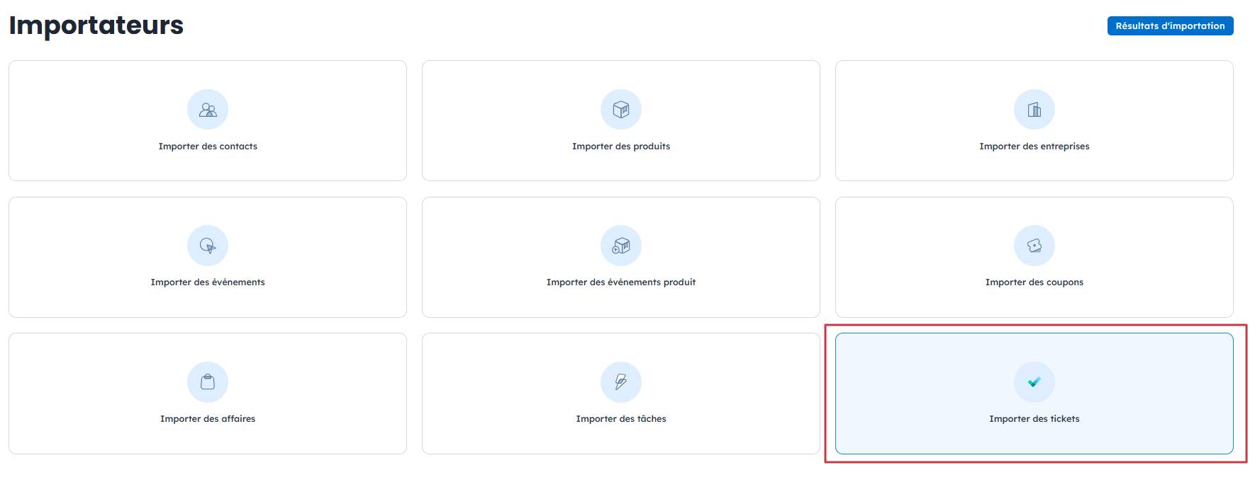Accédez à “Données” → “Importateurs” et sélectionnez “Importer des tickets”.