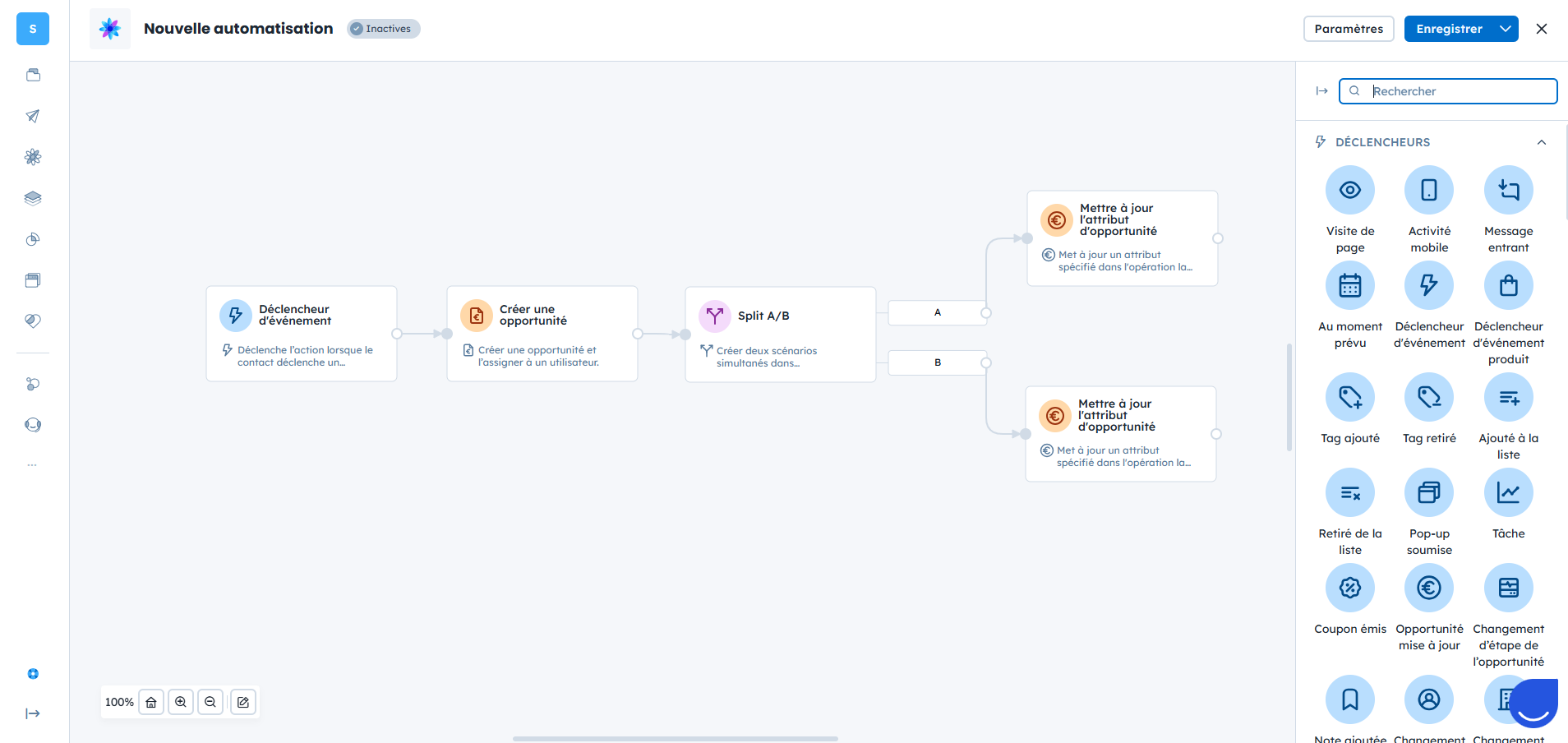 Les opportunités peuvent aussi être générées automatiquement via des automatisations. Cela permet de faire évoluer votre processus de ventes et d’éviter que certaines opportunités ne vous échappent.