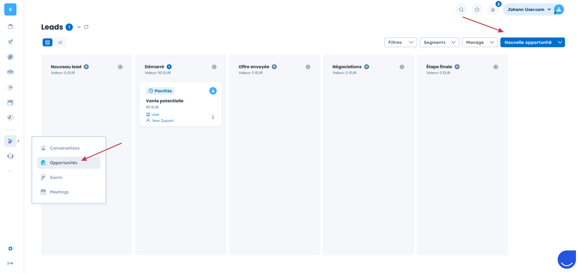 Cliquez sur “Nouvelle opportunité” en haut à droite.