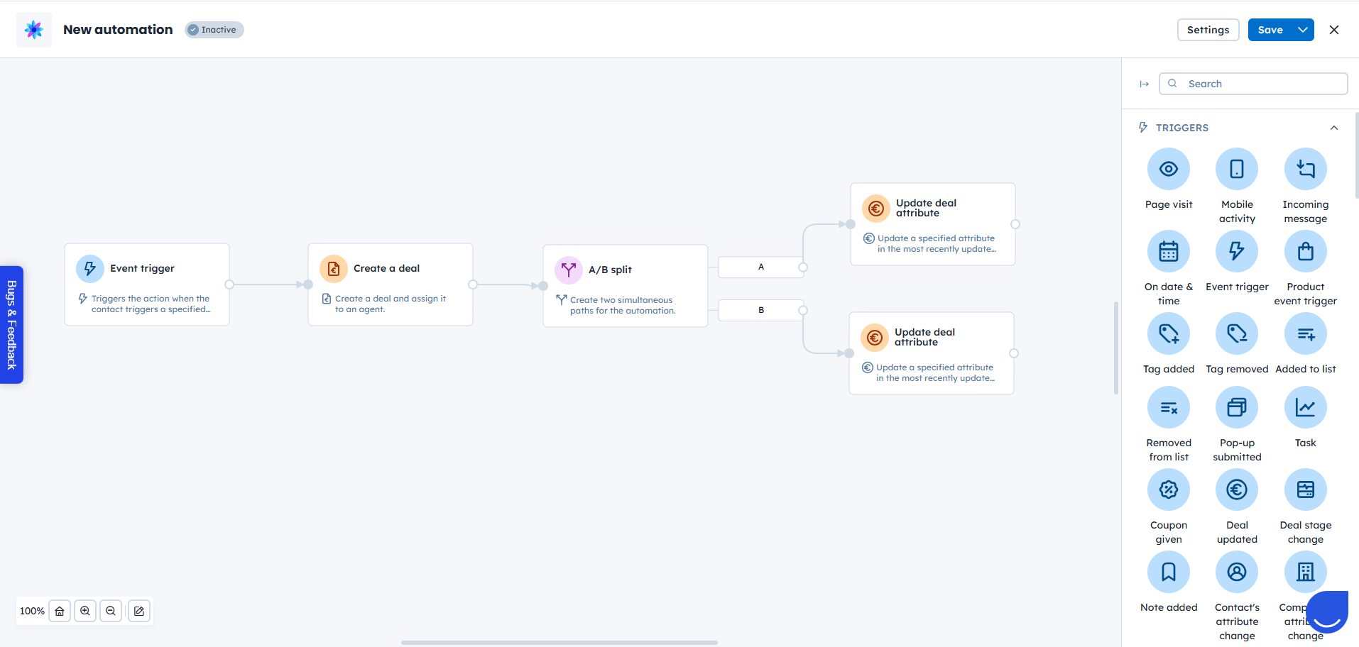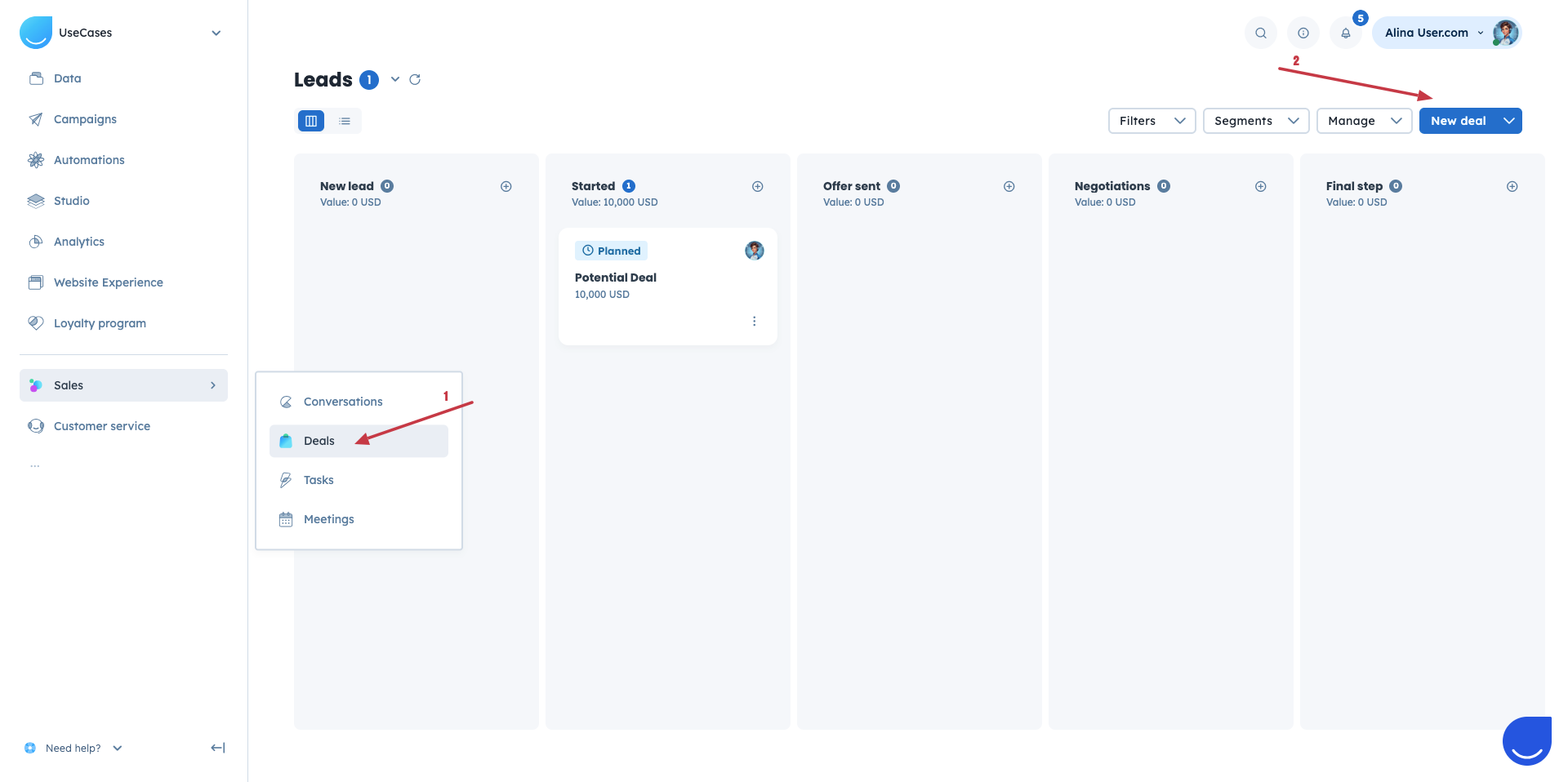 Deals can also be created automatically using automations. This approach helps you scale your sales process and ensures no opportunity is missed due to manual work.