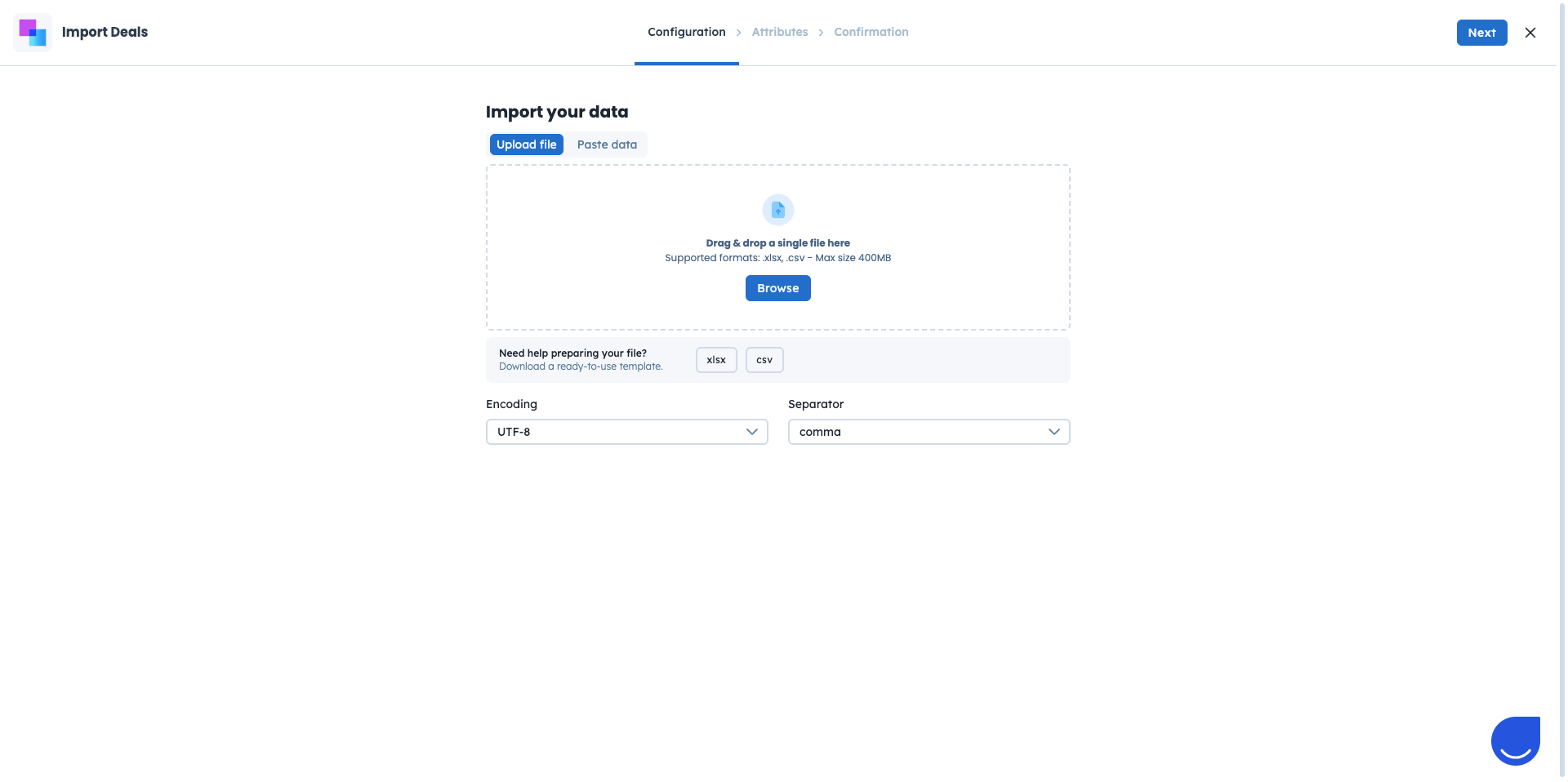 If you already have a list of opportunities, such as leads from events or data exported from another tool, you can import deals in bulk.