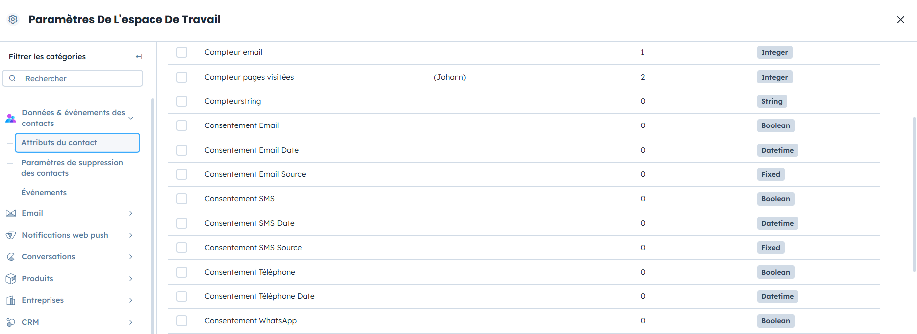 Attributs de contact : Données et événements des contacts > Attributs du contact