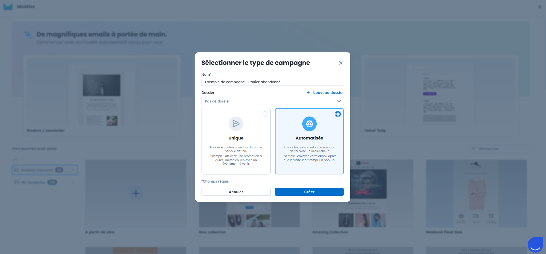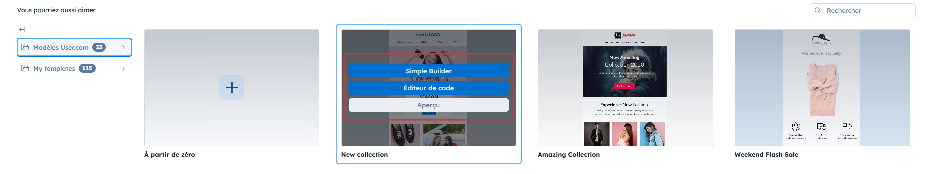 “Modèles User.com” : des templates préconçus que vous pouvez modifier et adapter à vos besoins.