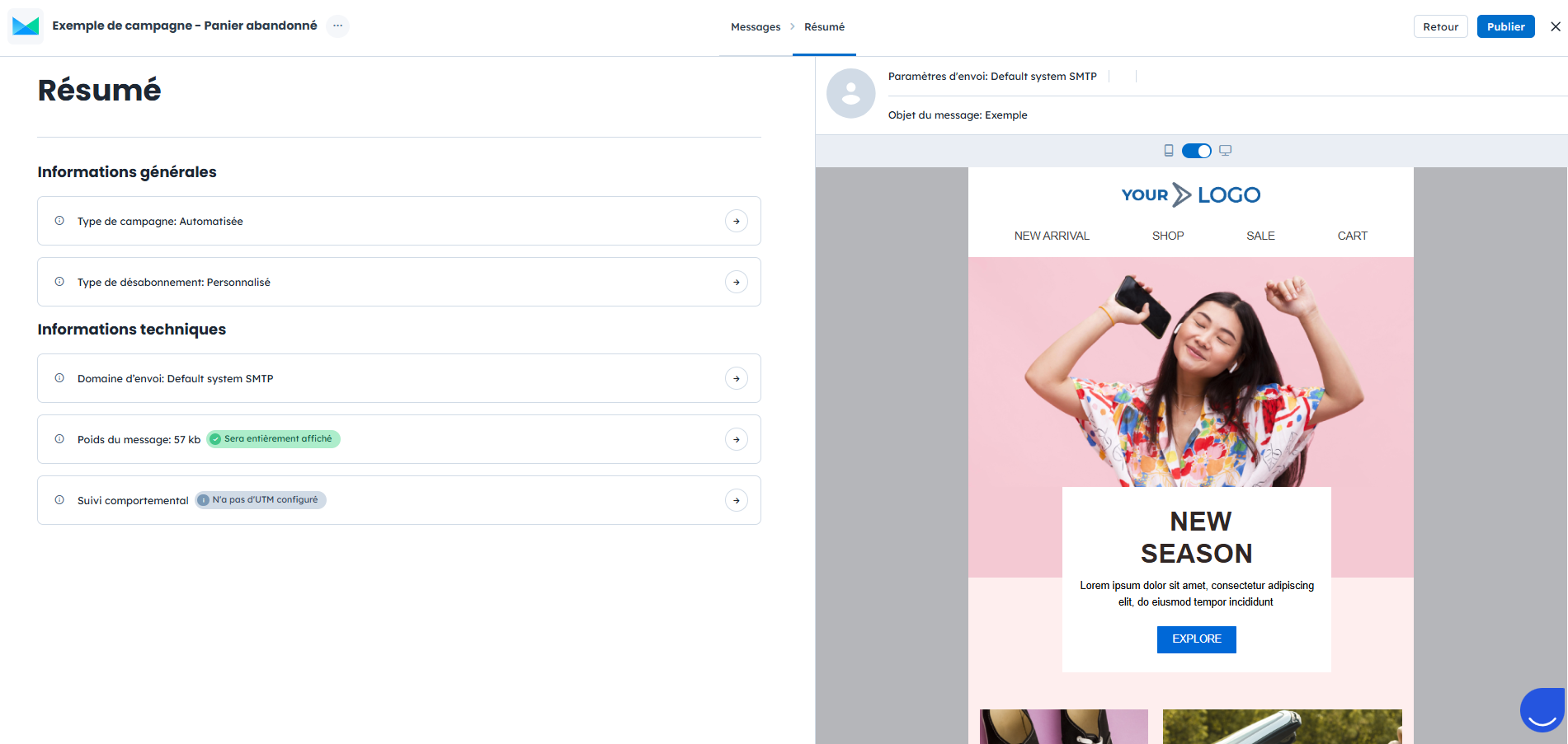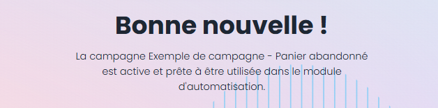 Une fois la configuration terminée, cliquez sur “Publier”. La campagne email sera alors activée et disponible dans les modules d'automatisation.