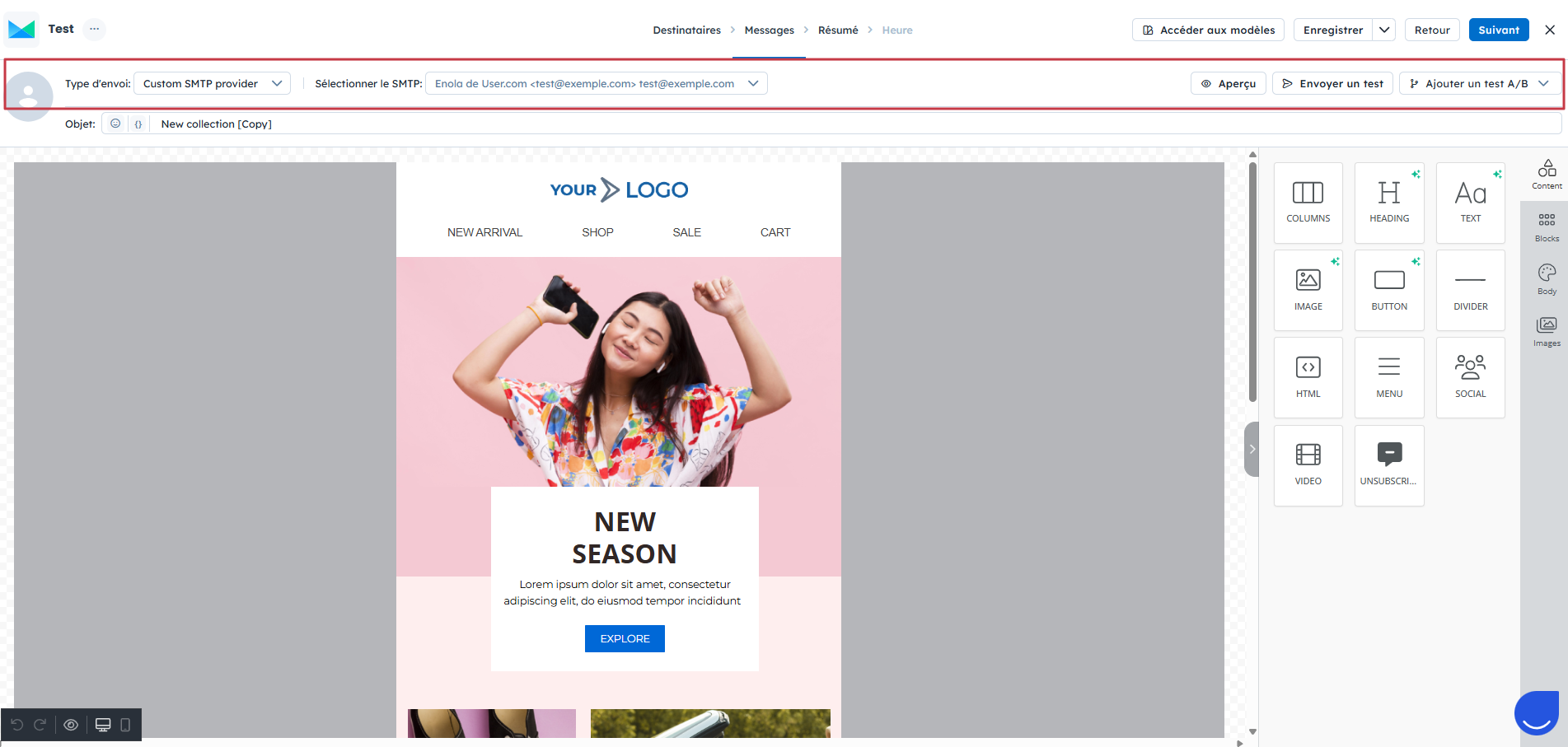 Sélectionner le SMTP : choisissez l’expéditeur dans le menu déroulant.