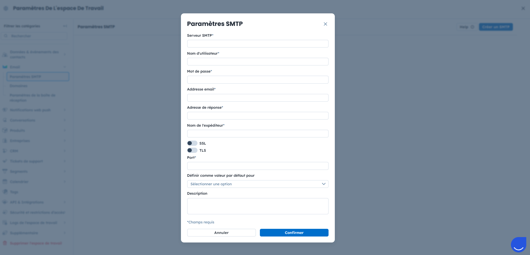 Rendez-vous dans Paramètres → Paramètres de l’espace de travail → Email → Paramètres SMTP.