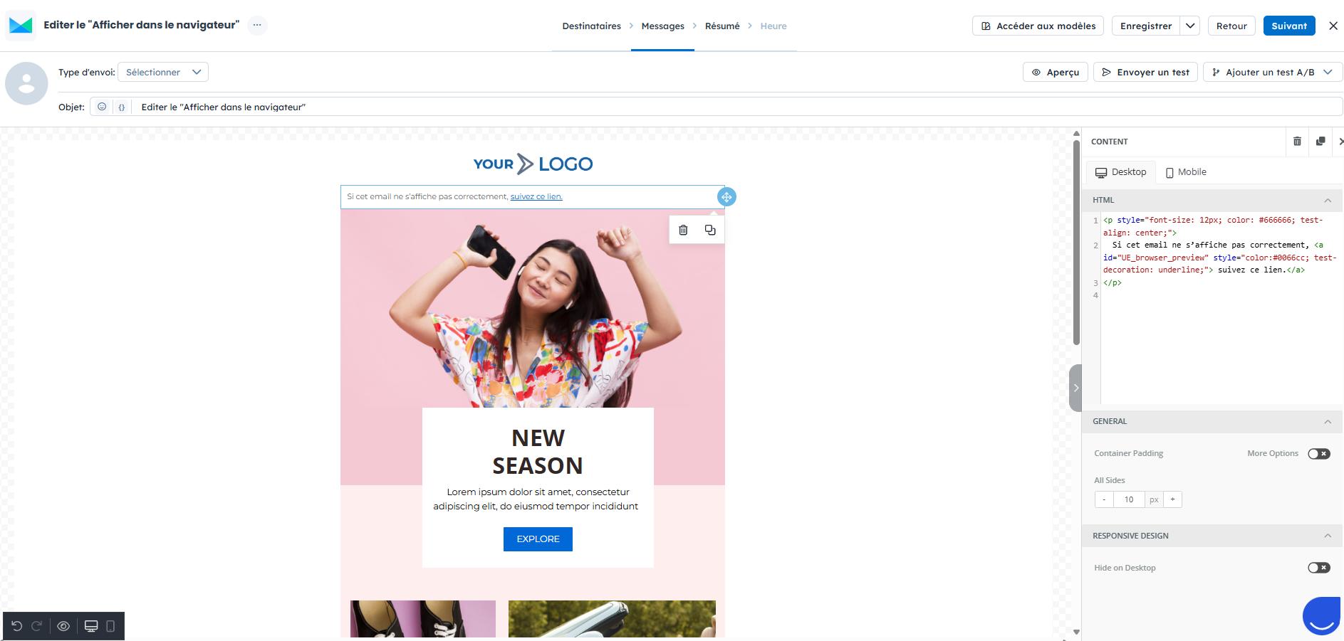 Suivez ces étapes pour insérer le lien “Afficher dans le navigateur” au sein de votre message.
