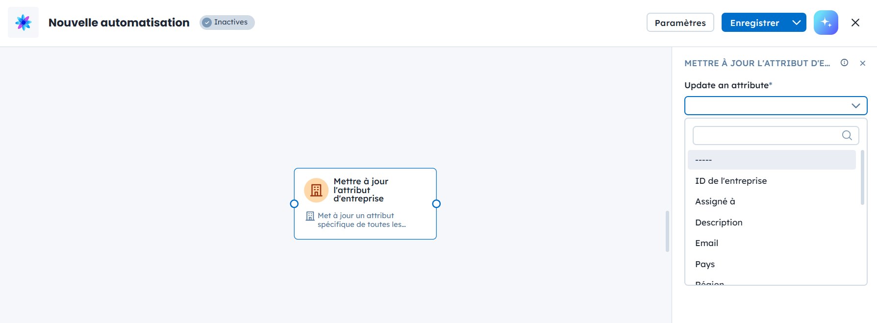 Les automatisations permettent de mettre à jour les attributs d’une entreprise lorsque certaines conditions sont remplies. Cela permet de maintenir les données des entreprises à jour en fonction de l’activité des contacts.