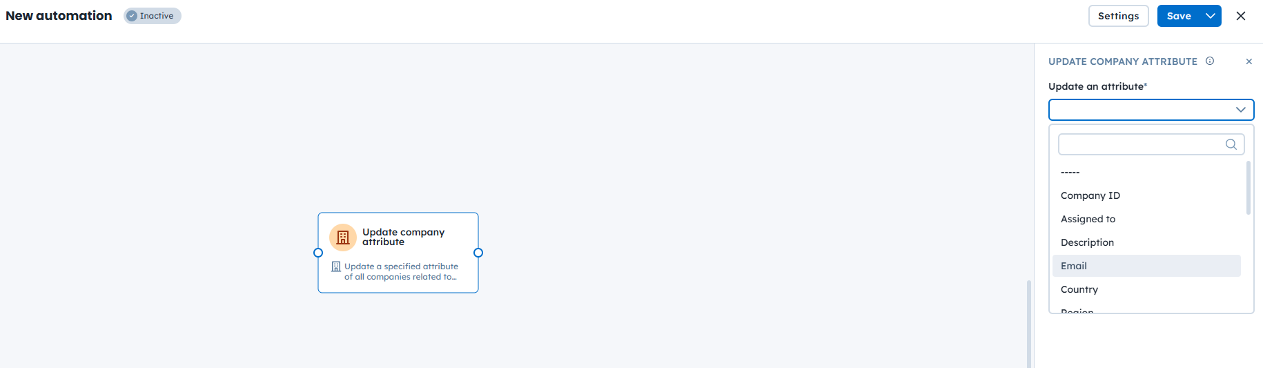Automations allow you to update company attributes when defined conditions are met. This is ideal for keeping company data in sync with contact activity and lifecycle events.