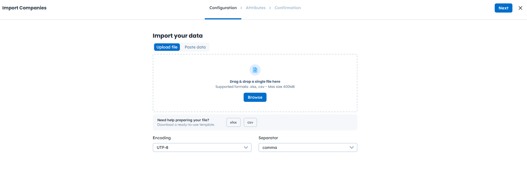 To learn more about file structure and the import process, see the dedicated CSV import article [LINK].
