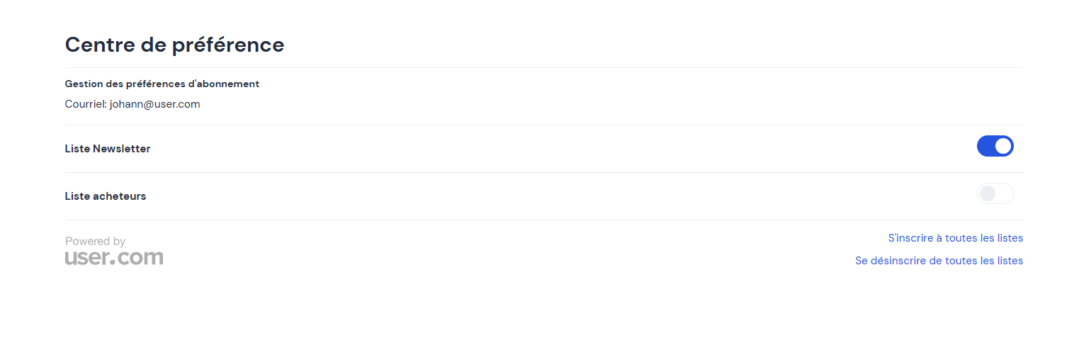 Au lieu de proposer uniquement une désinscription globale, ce lien offre plus de flexibilité. Vos destinataires peuvent, par exemple, se désinscrire d’une liste spécifique (comme les campagnes promotionnelles) tout en continuant à recevoir des informations importantes, des nouveautés produit ou d’autres emails pertinents. Résultat : une meilleure expérience pour vos contacts, des listes de contacts plus fiables et une délivrabilité optimisée.