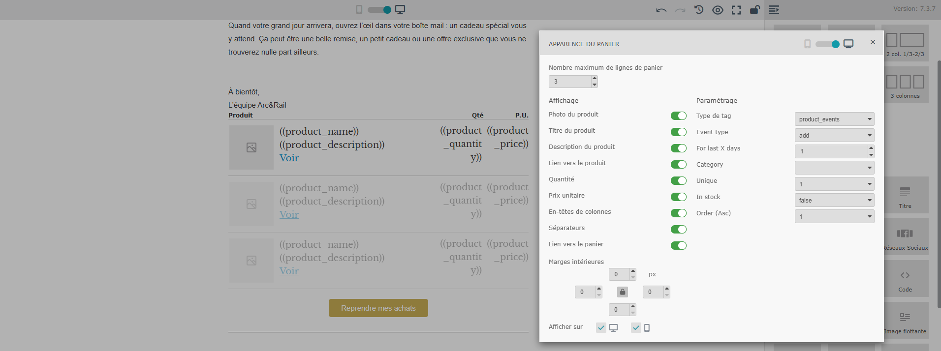 Vous pouvez choisir combien d’articles seront affichés dans l’email, selon vos besoins.