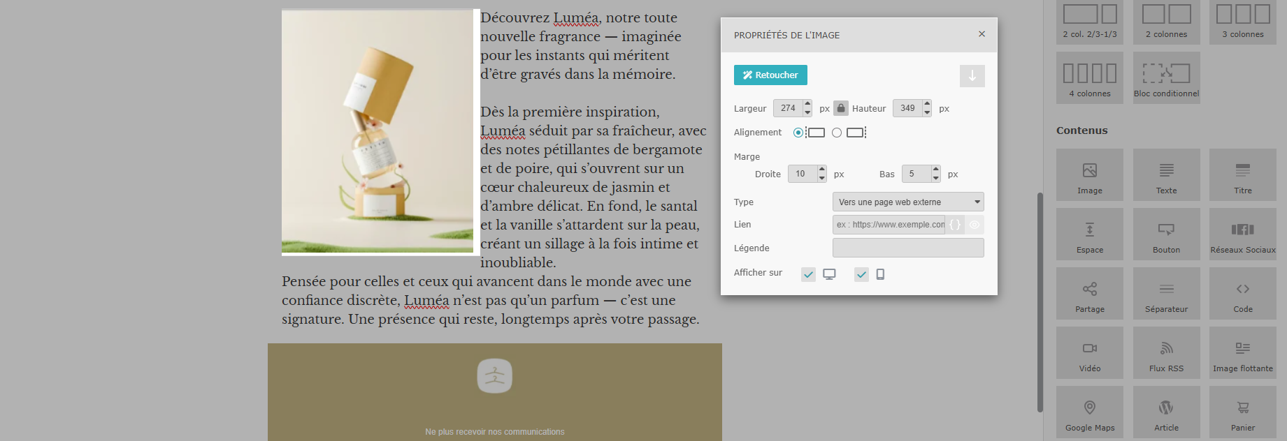 La gestion des liens de désinscription devient ainsi plus rapide et nettement plus simple que dans l’éditeur précédent.