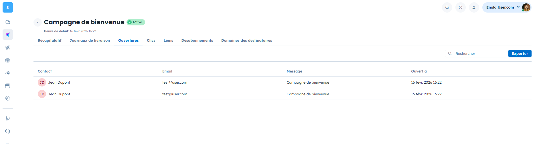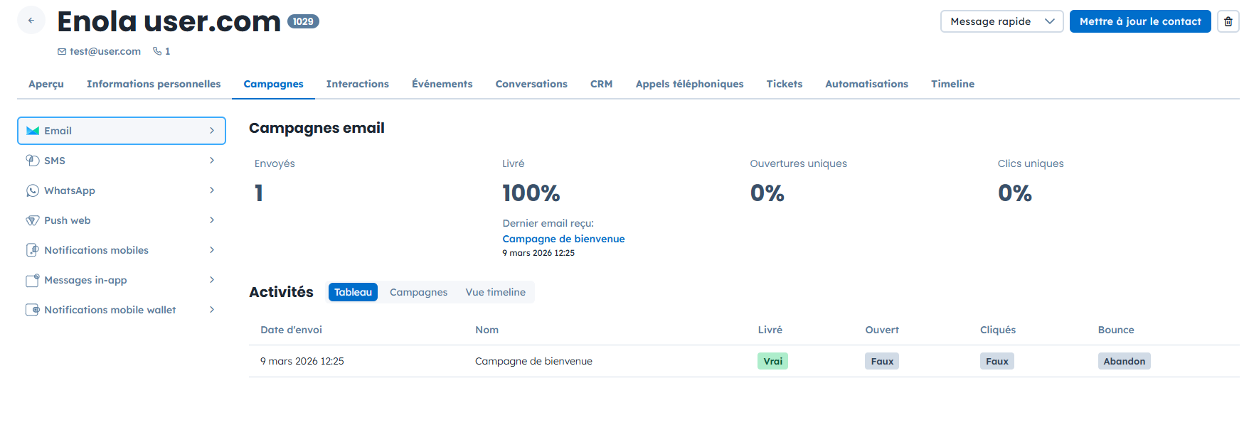Suivre les performances de vos campagnes est essentiel pour comprendre les attentes de votre audience et identifier vos axes d’amélioration. Sur User.com, les statistiques de campagne email vous offrent une vision globale ainsi que des analyses précises par contact, vous permettant d’ajuster vos prochaines actions en vous appuyant sur des données concrètes.
