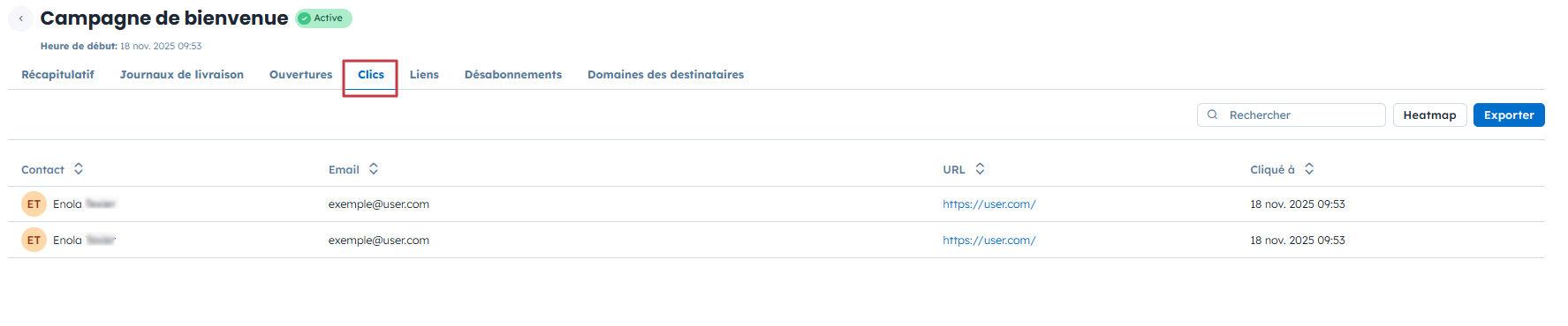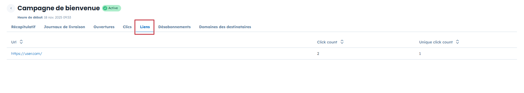 De même, chaque URL présente dans vos messages est trackée pour identifier précisément chaque clic.